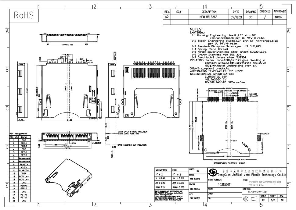 103150111- XQD自弹式储存卡座 TYPE 板上连接器