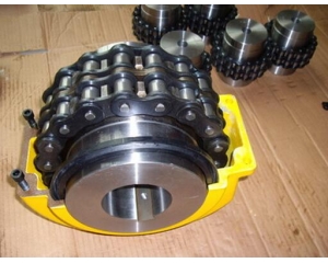 滾子鏈聯軸器成本較低,對安裝精度要求不高,有的相對位移補償能力。具有裝拆方便,質量輕,工作等特點。并且滾子鏈聯軸器結構簡單,只有四部分組成:兩軸、鏈條、罩殼。一般鏈輪,鏈條的尺寸有4分,5分,6分,8分,1寸,1寸半,1寸6,2寸,2寸半,3寸。
