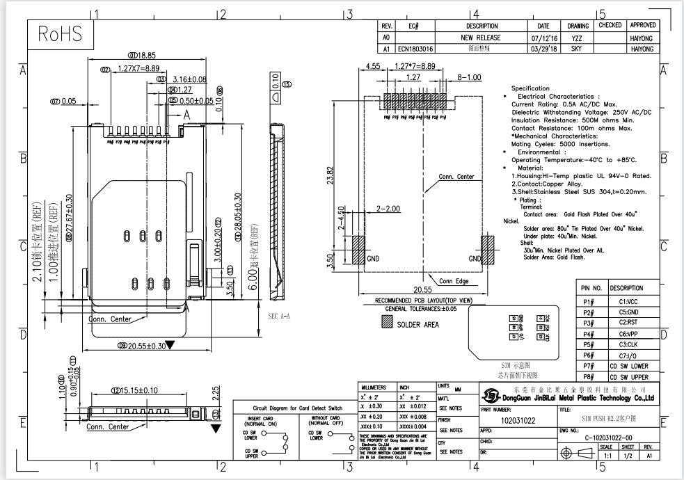 102031022-SIM PUSH自弹式卡座 6+2P H2.2卡槽
