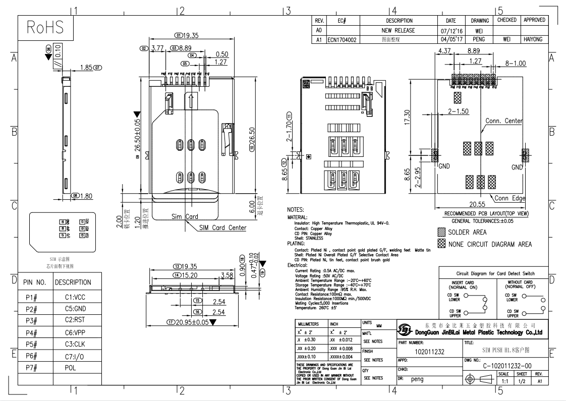 【名 称】:sim自弹式卡座