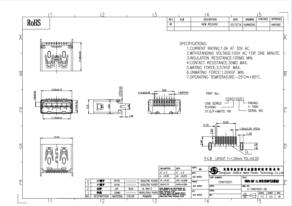 名称:USB3.0AF 11.6H立式SMT(无卷边)