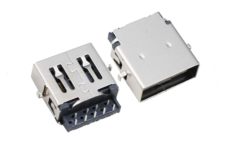 104012902-usb3.0反沉连接器 平口两脚母座 蓝色胶芯