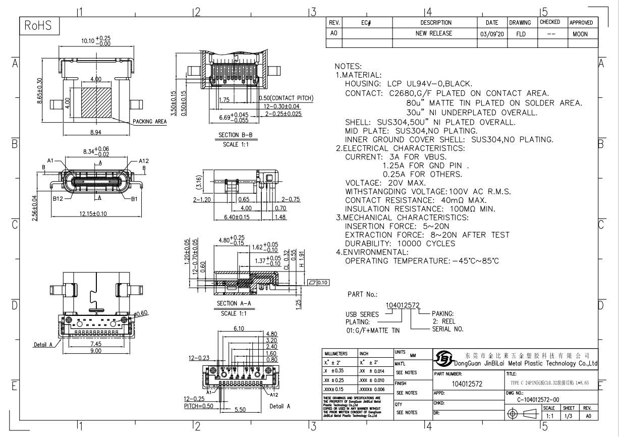 名称:TYPE C 24PIN沉板CL0.32前插后贴 L=10.0
