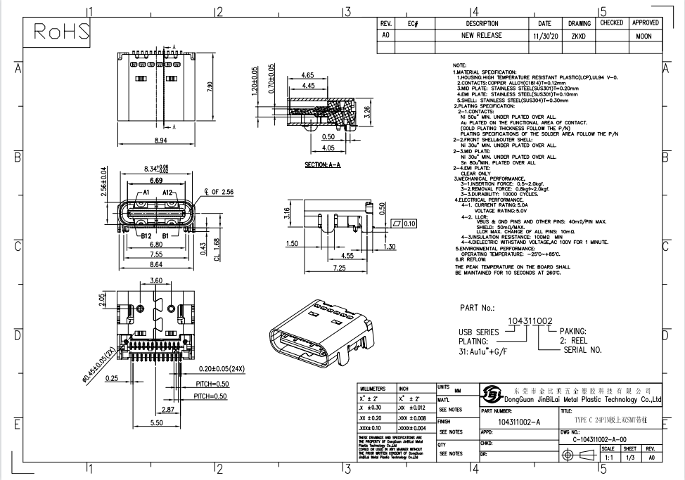 104311002-A -USB type-c母座 24P板上双贴连接器