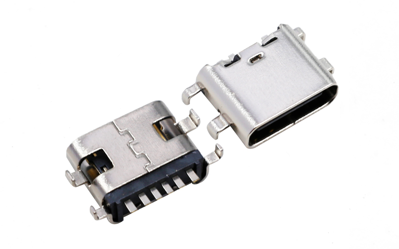 104316072-TYPE-C 6P母座沉板0.8 外壳4脚插板 充电连接器