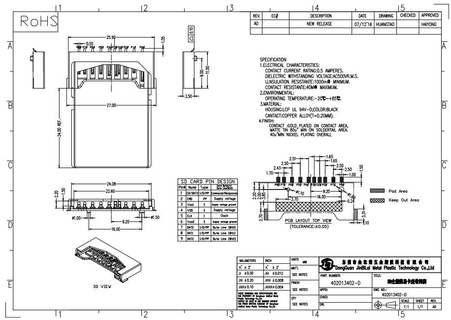 • 402013402-D SD全塑黑胶简易卡座带焊脚
